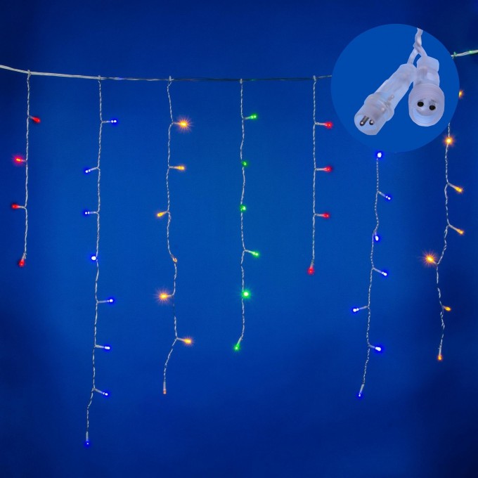 Бахрома светодиодная UNIEL ULD-B6007-200/STK MULTI IP44 со статическим свечением, 6м. Соединяемая. 200 светодиодов. Разноцветный свет. Провод прозрачный. ТМ Uniel
