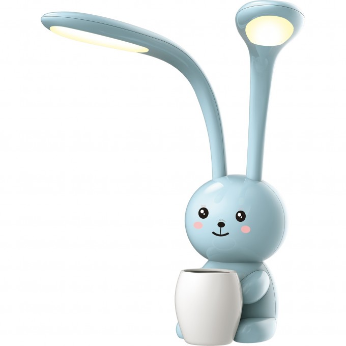 Светильник настольный светодиодный Заяц. С подставкой под канцелярские принадлежности. Сенсорный выключатель. Диммер. Синий.